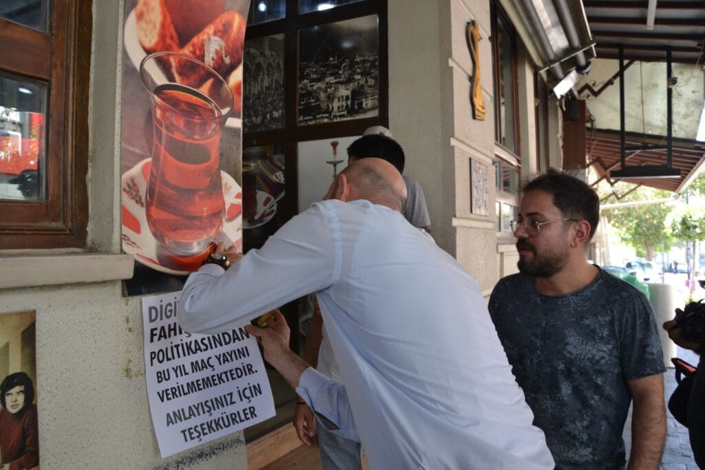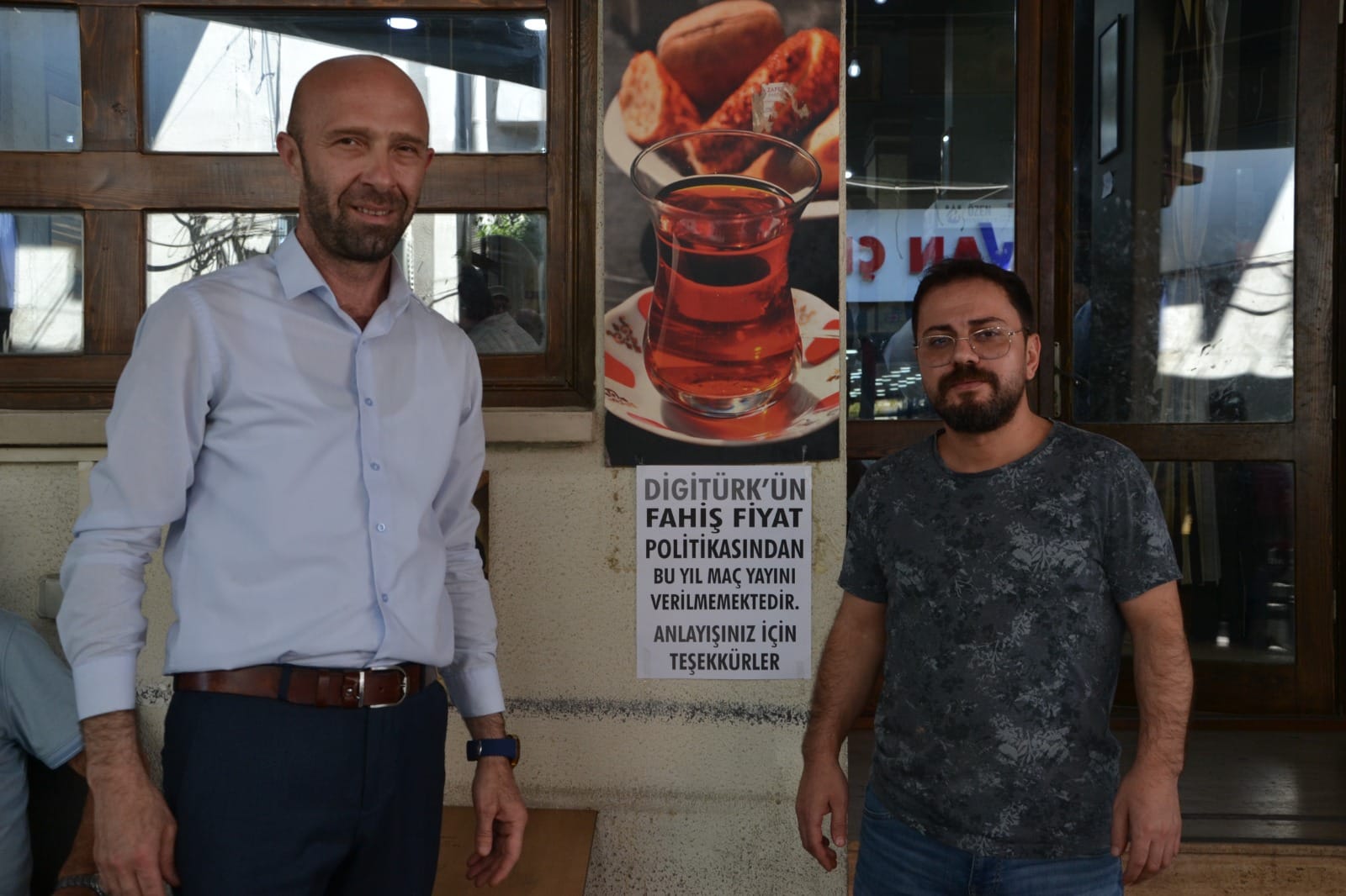 Manisa’da kahveci esnafların maçları yayınlayan ve 600 bin TL gibi fahiş fiyat belirleyen yayıncı kuruluş Digitürk’e (Lig TV) tepkiler devam ediyor. Manisa’da kahvece esnafları kahve girişlerine “Digitürk’ün fahiş fiyat politikasından bu yıl maç yayını verilmemektedir. Anlayışınız için teşekkürler” yazılı afişleri astı. Geçen yıl Manisa’da 70 işletmeye Digitürk’e kaydını yaparken, bu yıl ise yüksek fiyatlar nedeniyle sadece 3 kahveci esnafı başvurdu. Fahiş fiyata sesini yükselten kahveci esnafı birlik ve beraberlik içinde hareket etmeye başladı. Digitürk’ün fazla başvuru olmaması üzerine fiyatta biraz indirime gittiği ifade edildi. Ama bu fiyatta yüksek geldiği belirtildi. Kahve esnafı, “Biz 600 bin TL’ye Lig TV bağlarsak normal maçlar için kişi başı en az 200-250 TL, derbi maçları için 500 lira almamız lazım. Vatandaş bunu nasıl ödesin bir maç için” diyerek yüksek fiyatlara tepki gösterdi.